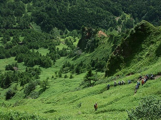 草すべりを降る一行