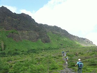 黒斑山へと連なる火口壁