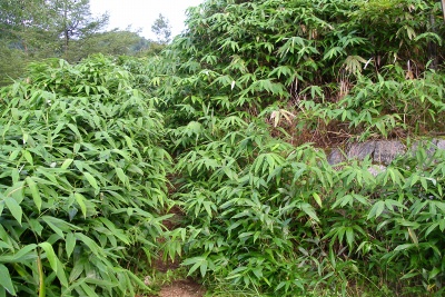 ![]() 安平路へ向かう -7:27 いきなり笹の生い茂る下り斜面 |