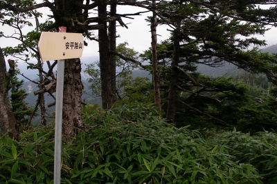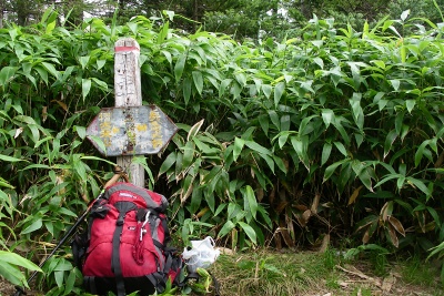 ![]() 山頂 -9:45 木に囲まれ展望のないピーク |