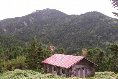![]() 安平路小屋 小屋の向こうが目指す安平路山 |