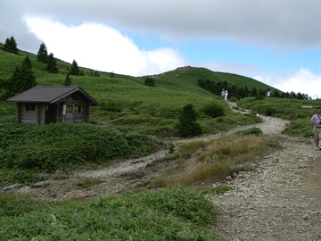 ![]() 稜線に出る -11:41 中津川市の設置した休憩小屋 |