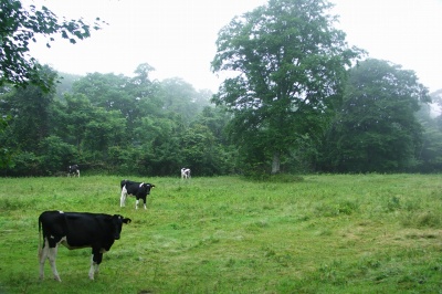 ![]() 闖入者 牛たちが怪訝な眼差しで見つめる |