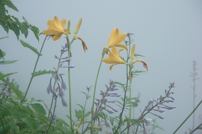 ![]() 戸隠キャンプ場 -7:49 家を出てからも霧雨は降ったり止んだり |