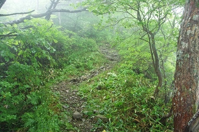 ![]() 登山道へ -8:22 ようやく入山口へ |