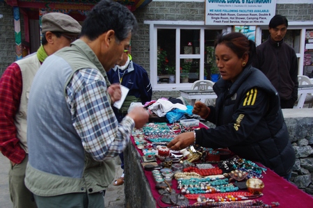 ![]() 即席土産物店 トレッキングの安全にとブレスレット購入(100ルピー) |