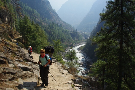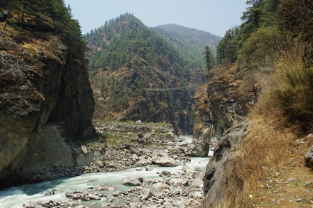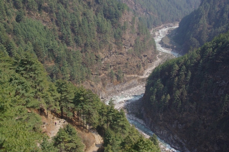 ![]() 谷沿いに続く エベレスト街道導入部は深い谷底を行く |