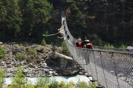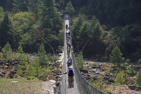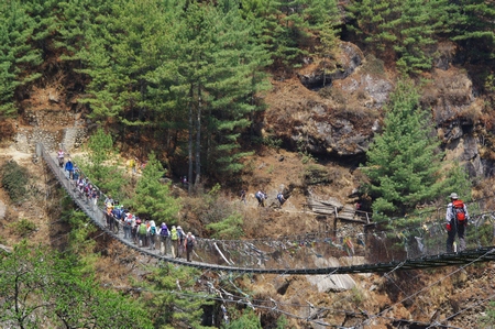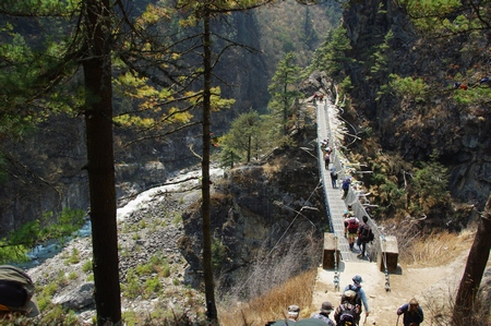 ![]() 最後の吊り橋 あれを渡るとナムチェへの標高差400mの登りだ |