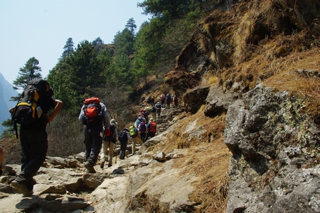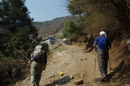 ![]() サガルマータ(8848m) 途中に遠望できる休憩場所が在る |