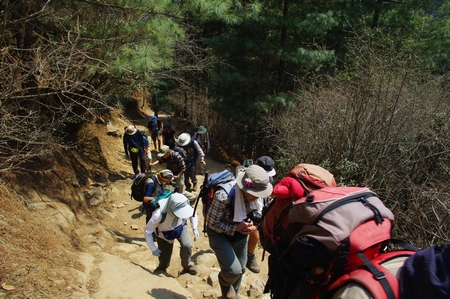 ![]() 急登の始まり ゆっくりゆっくり歩を進める |