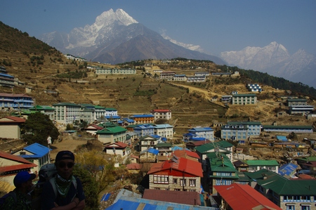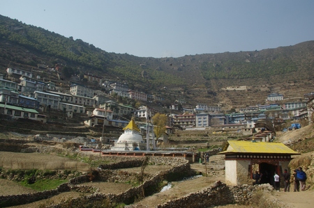 ![]() ナムチェ入口 写真で見た光景が眼前に広がる |