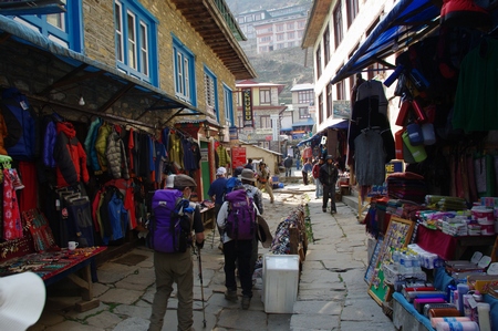 ![]() ナムチェ街並 土産物・登山用品店が軒を連ね、両替・Iネット店も在る |