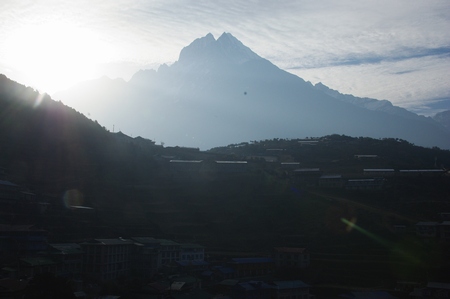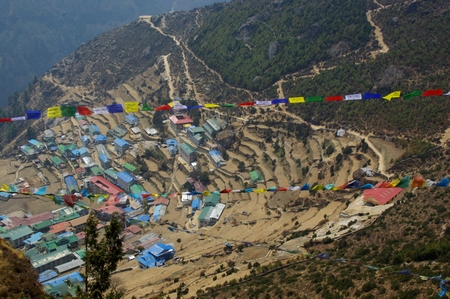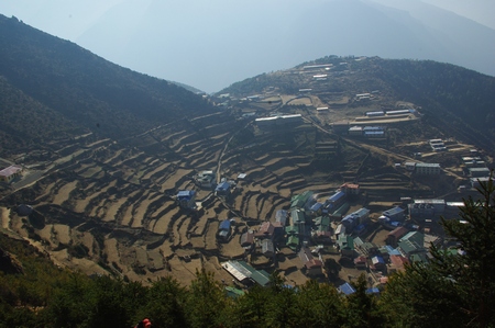 ![]() ナムチェ俯瞰 陰影が段々畑を浮かび上がらせる |