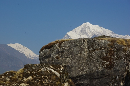 ![]() 背後の山々 巨岩の向こうに新たな山も見える |