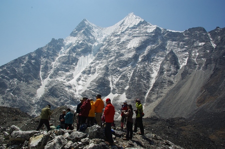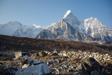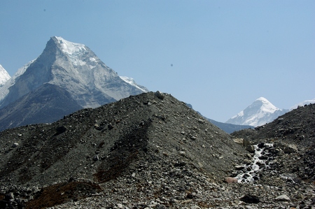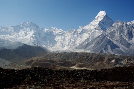 ![]() アイランドピーク(6160m) (ローツェの右手前)も近くなってきた |