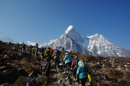 ![]() アイランドピークへ 途中までは同じ道を行く |