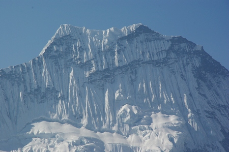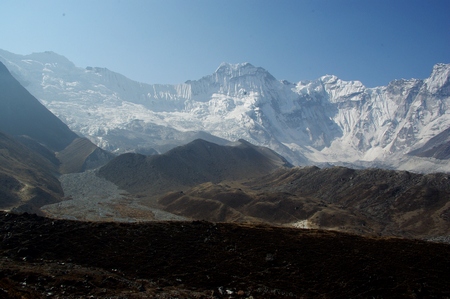 ![]() カンレヤム(6,430m)へ続く稜線 ヒマラヤ襞の最も美しい山と言われている |