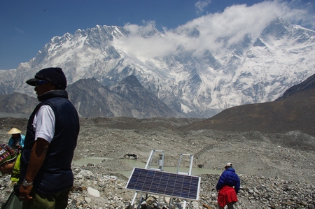 ![]() ソーラー利用により観測データは衛星通信で送られる |