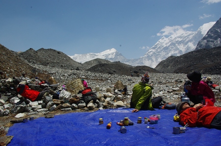 ![]() シェルパ達 此処まで来られたのも皆さんのお陰です |