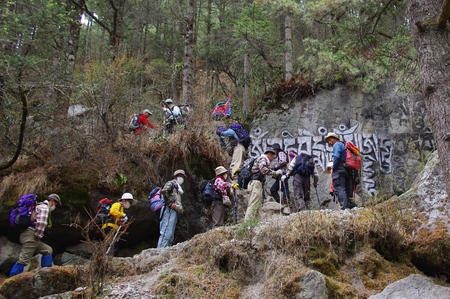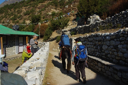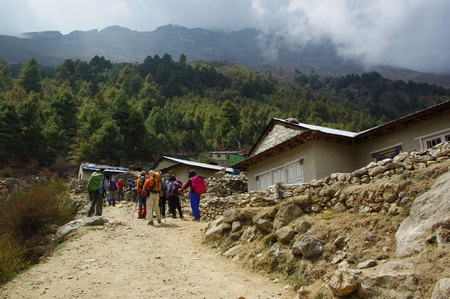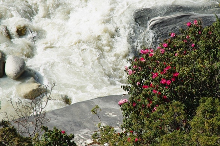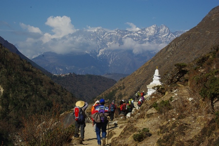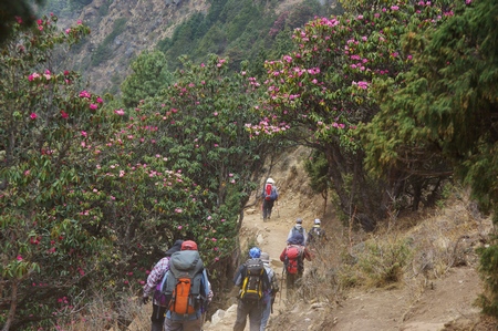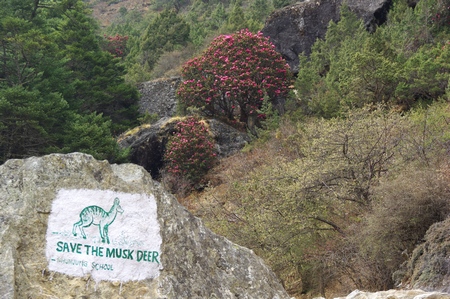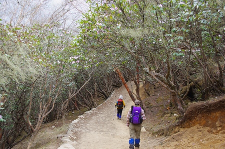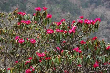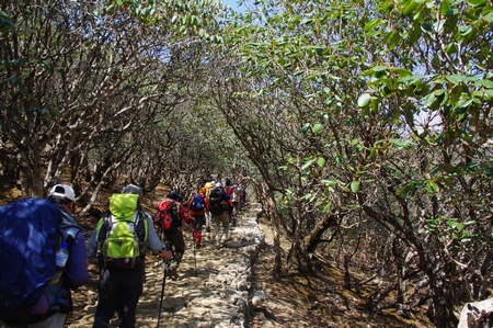 ![]() タンボチェへと続く坂はシャクナゲ林 |