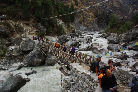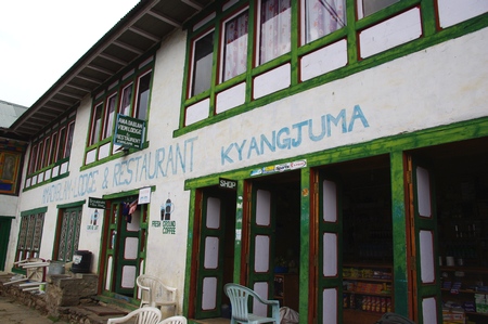 ![]() 前方に宿泊地キャンジュマが見えて来た |