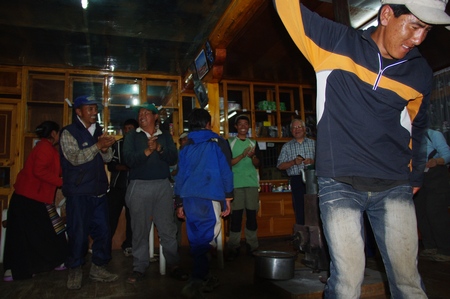 ![]() シェルパ・ダンス 興が乗って何人かが踊り始めた |