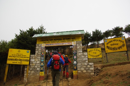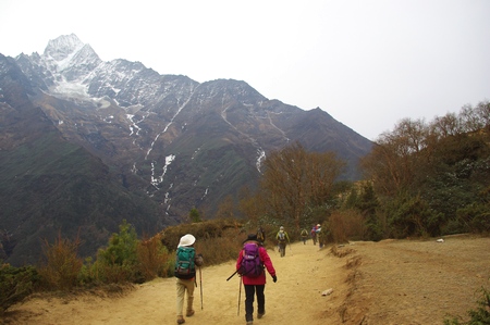 ![]() 出発 別れは惜しいが隊はナムチェを目指す |