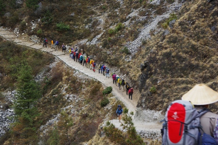 ![]() スライド ヤクの隊列を避けるときは山側へ |