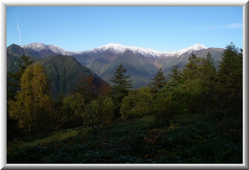 【火事場跡から白峰三山】