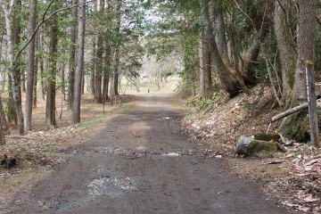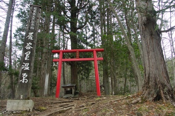 ![]() 林道を戻る 途中に居谷里一番水の水場 |