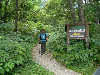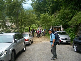 ![]() 登山道入口 -6:10 此処は満車状態で路上駐車も |