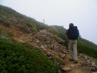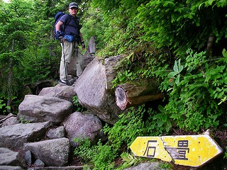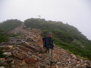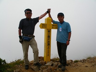 ![]() 岩小屋沢岳へ 見慣れた色の山頂標識 |