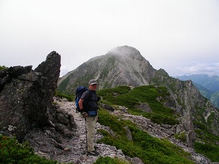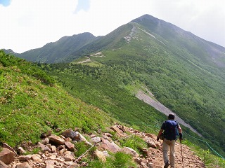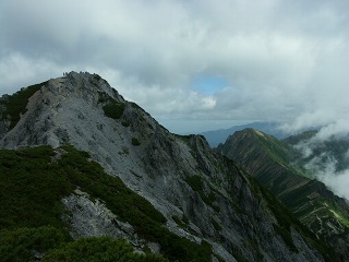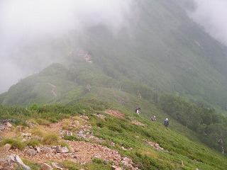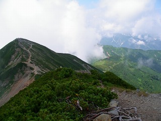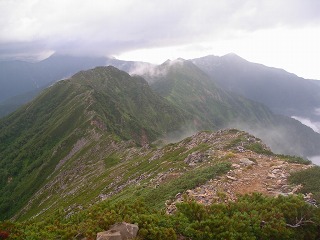 ![]() 縦走路 爺ヶ岳から辿って来た稜線 |