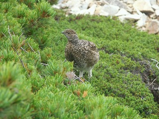 ![]() 雷鳥 成長した4羽のヒナを連れていた |