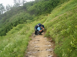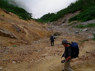 ![]() ザレ場の下り 登りには最後の頑張りどころ |