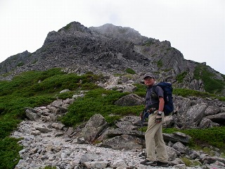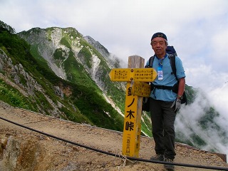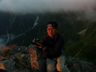 ![]() 針ノ木岳山頂 -9:20 晴れれば背後に剣・立山 |
