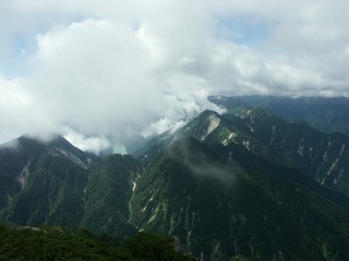![]() スバリ岳へ 沢の付く三つの山を越えた |