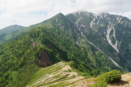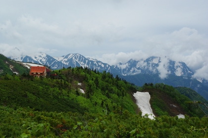 ![]() 振り返ると種池山荘の背後に立山〜劔 |