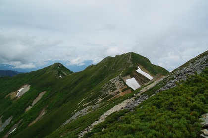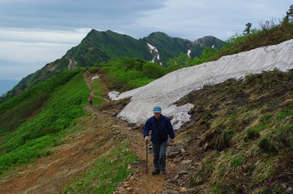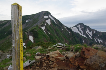 ![]() 爺ヶ岳中峰 -14:10 背後の鹿島槍はガスの中 |