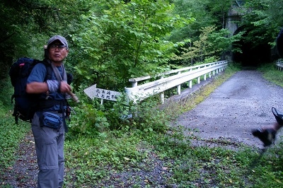 ![]() 二俣分岐 -7:38 右は北沢への林道トンネル |