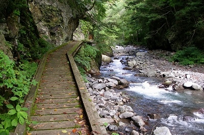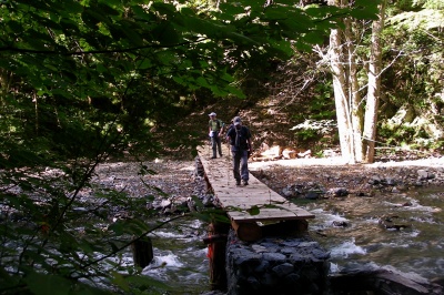 ![]() 戻り橋を渡る 沢幅の狭い淵には立派な橋が架かる |