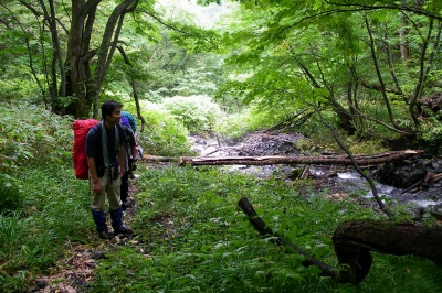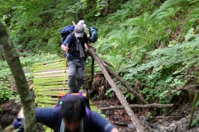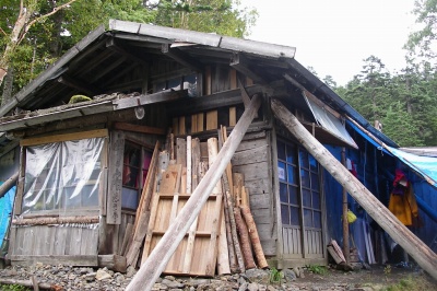 ![]() 岩魚留小屋 -10:07 対岸へ渡る吊り橋が流失! |