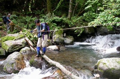 ![]() 応急処置 路肩崩落で沢に降りる |