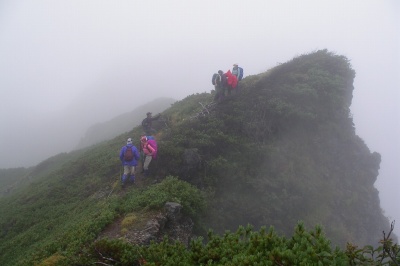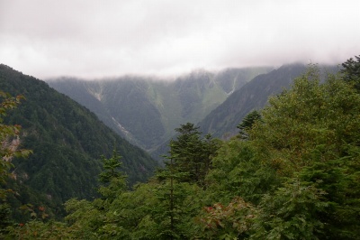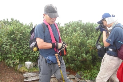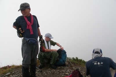![]() 展望台 周りのガスは取れたが穂高は雲の中 |