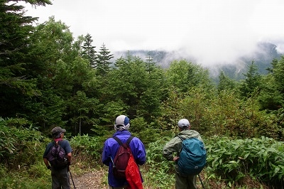![]() 峠にて 残念ながら穂高は雲に隠れんぼ |
