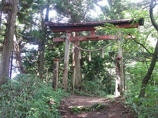 ![]() 山頂への案内 社殿裏から続く |