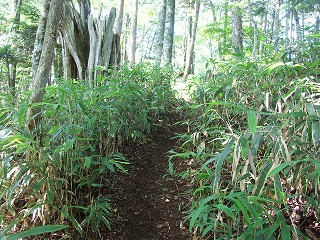 ![]() 山頂目前 手前から熊笹の道となる |