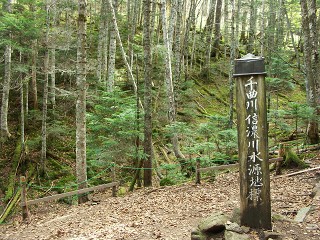 ![]() 源流へ -8:52 写真でお馴染みの水源地標 |