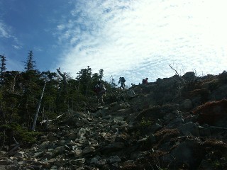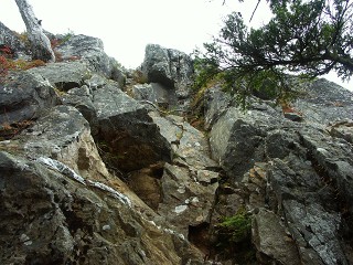 ![]() 岩峰ピークへ -12:06 規制ロープを潜り登ってみる |