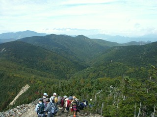 ![]() 団体さん下山 -10:20 正面の谷が登って来た源流ルート |